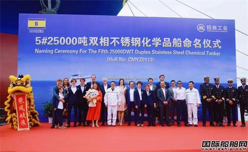 7月19日,招商工業(yè)揚州金陵為比利時船東CMB建造的第5艘25000噸雙相不銹鋼化學(xué)品船舉行命名儀式。船東CCO Michael Saverys帶領(lǐng)家族成員出席了本次命名儀式。船東及船級社現(xiàn)場監(jiān)造組,高級船員也受邀參加本次儀式,共同見證了新船命名。