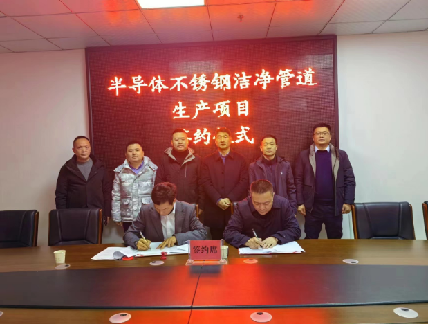 12月24日,林輝副區(qū)長代表區(qū)政府與半導體上海吉拜不銹鋼管業(yè)有限公司余深宏成功簽約,商務局李新良,市監(jiān)局王青山、朱小兵出席簽約儀式。